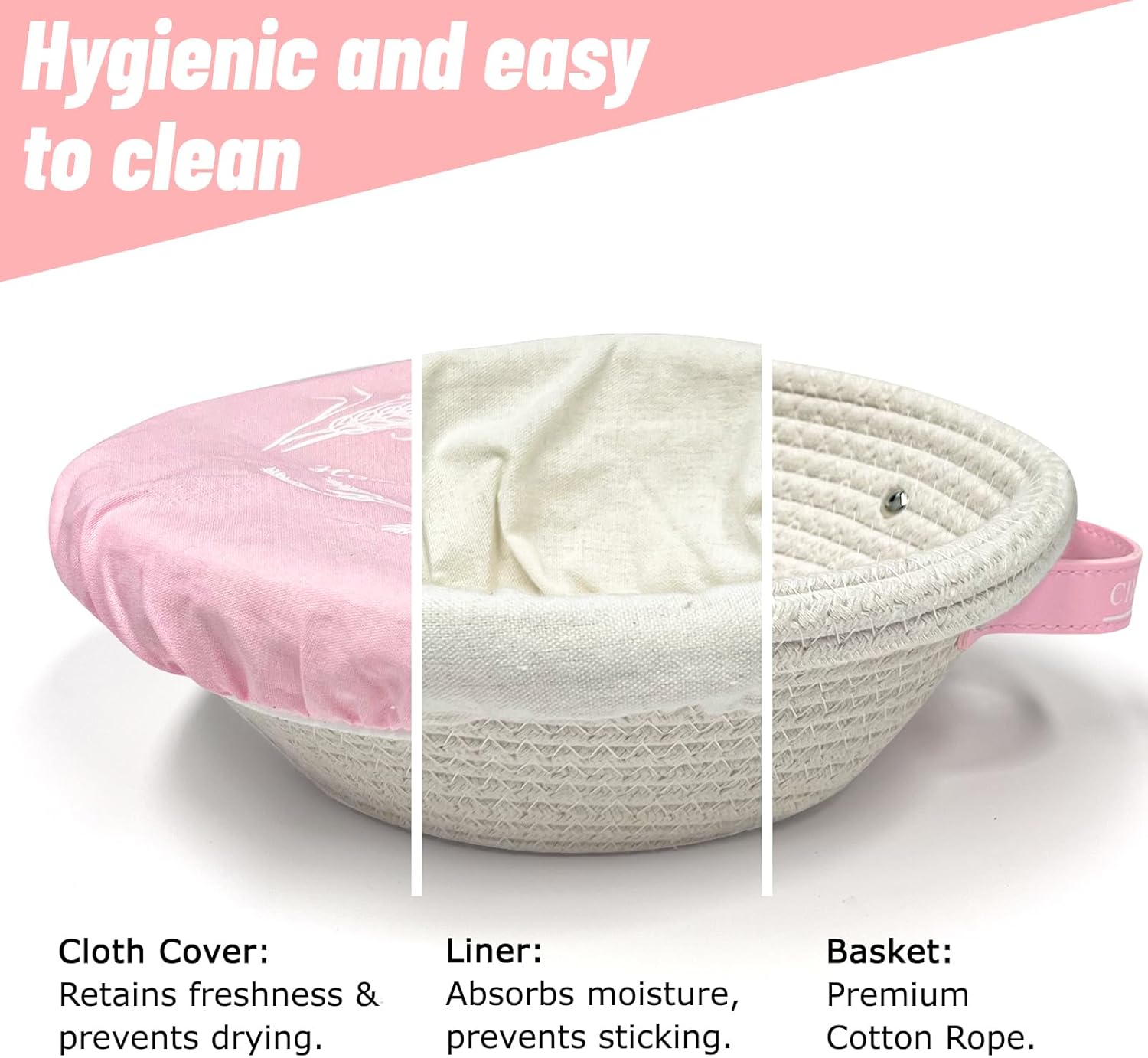 - Bake-to-Serve Elegance: Transition seamlessly from proofing to serving! The neutral white liners and charming pink covers create a stylish contrast, making these baskets ideal for showcasing fresh bread on your dining table.