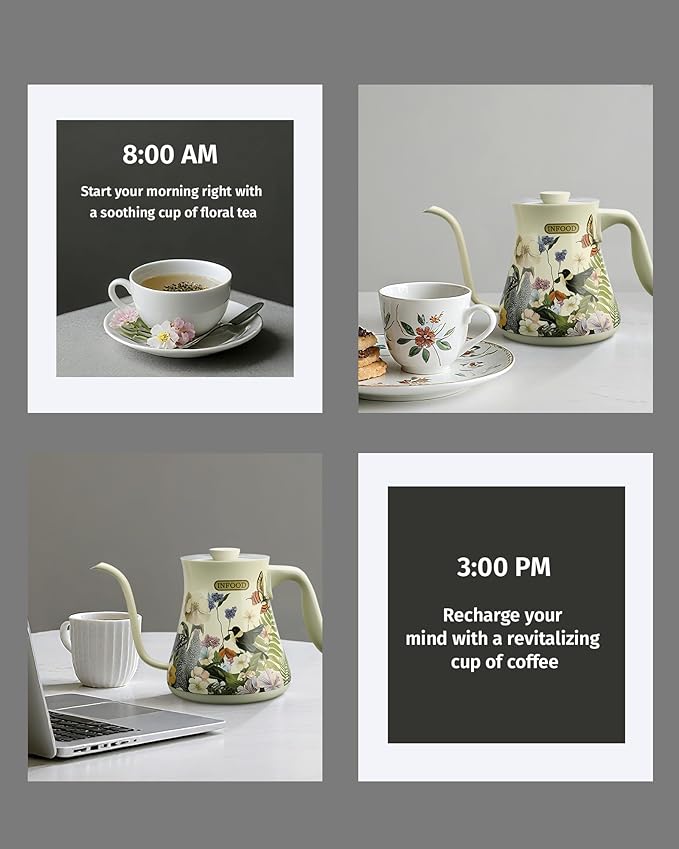 - Artistic Floral Design: Retro-inspired floral patterns combined with a modern aesthetic create a bold and elegant statement. This kettle adds personality and charm to any kitchen or workspace - ideal for those who value both function and design