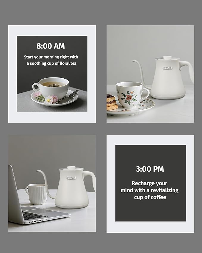 - Perfect Pour-Over Kettle: Crafted for coffee enthusiasts, this kettle features a precision gooseneck spout for a smooth, controlled pour, ensuring optimal extraction for a richer, more flavorful cup. With exact temperature control and a high-resolution LCD screen, you can quickly heat water and make precise adjustments with ease for perfect brewing every time