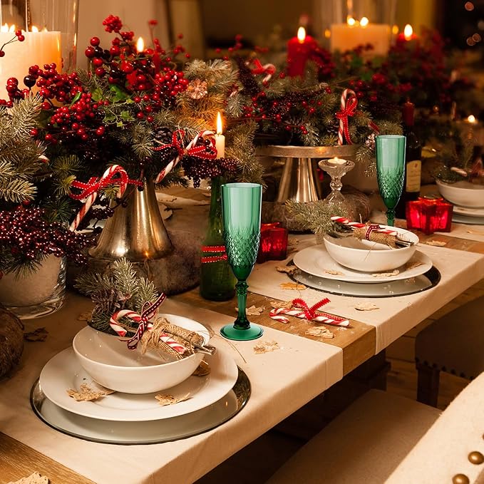 - Charming Set: Champagne flutes set include 48 retro-style dark green champagne plastic wine glasses, providing ample quantity to meet your daily use and replacement needs. A suitable champagne cup is the icing on the cake. Plastic wine glasses not only carry the wine, but also carries the laughter and blessings