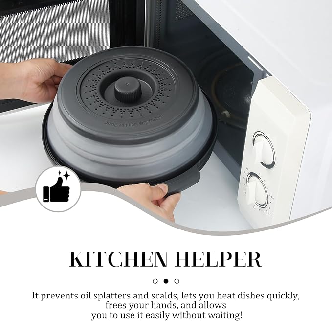 - 【EASY TO STORE】:The microwave splatter cover has a diameter of 10.7 inches,and its height can be freely adjusted between 1 to 3.2 inches.It can be directly cleaned in the dishwasher,and its foldable design saves storage space