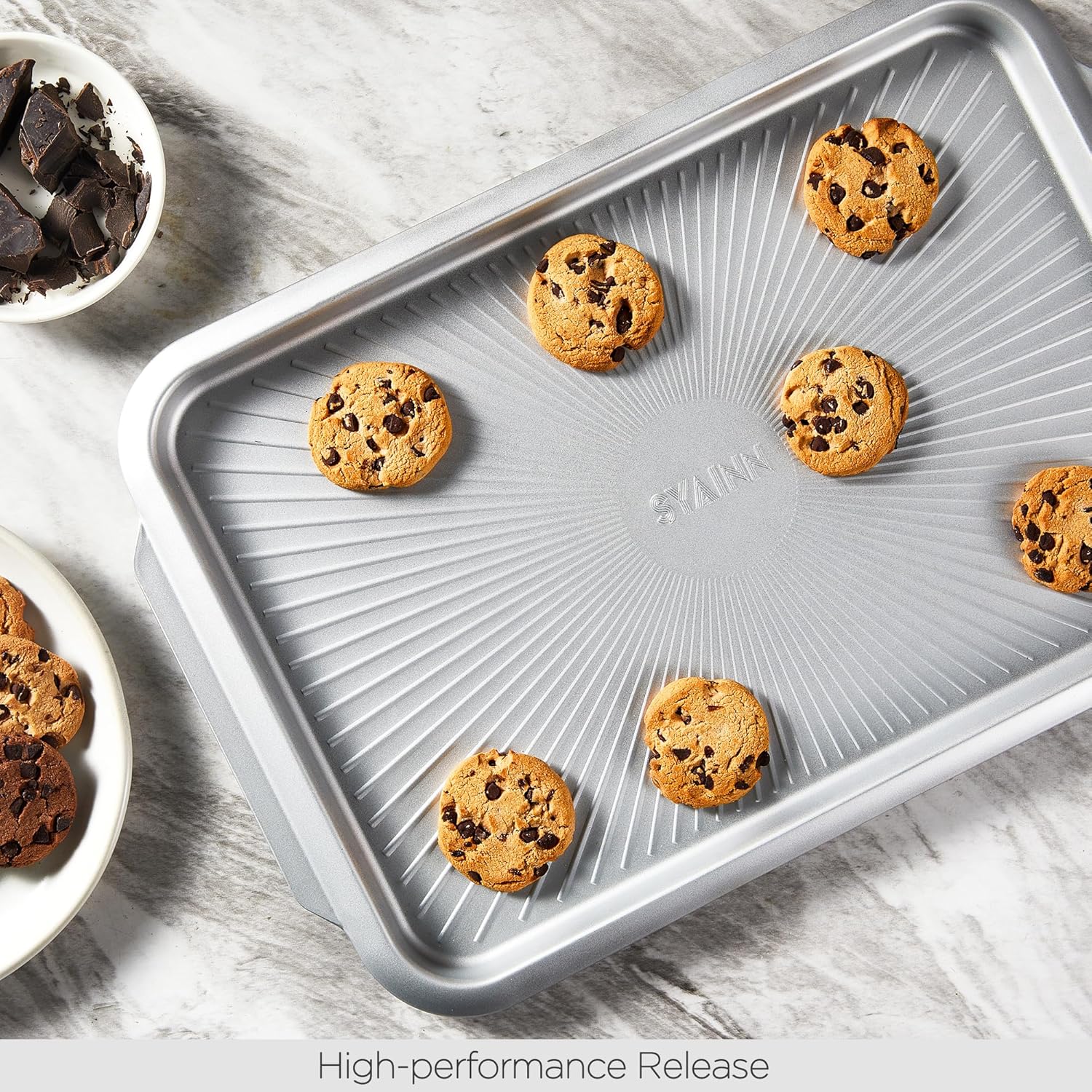 SYAINN Non-stick Ceramic Baking Sheet Set, 3 Pieces- Aluminum Steel Cookie Sheets for Baking-Includes Half/Quarter/Jelly Roll Pans-Warp Resistant, Toxic, PTFE & PFOA Free-Red