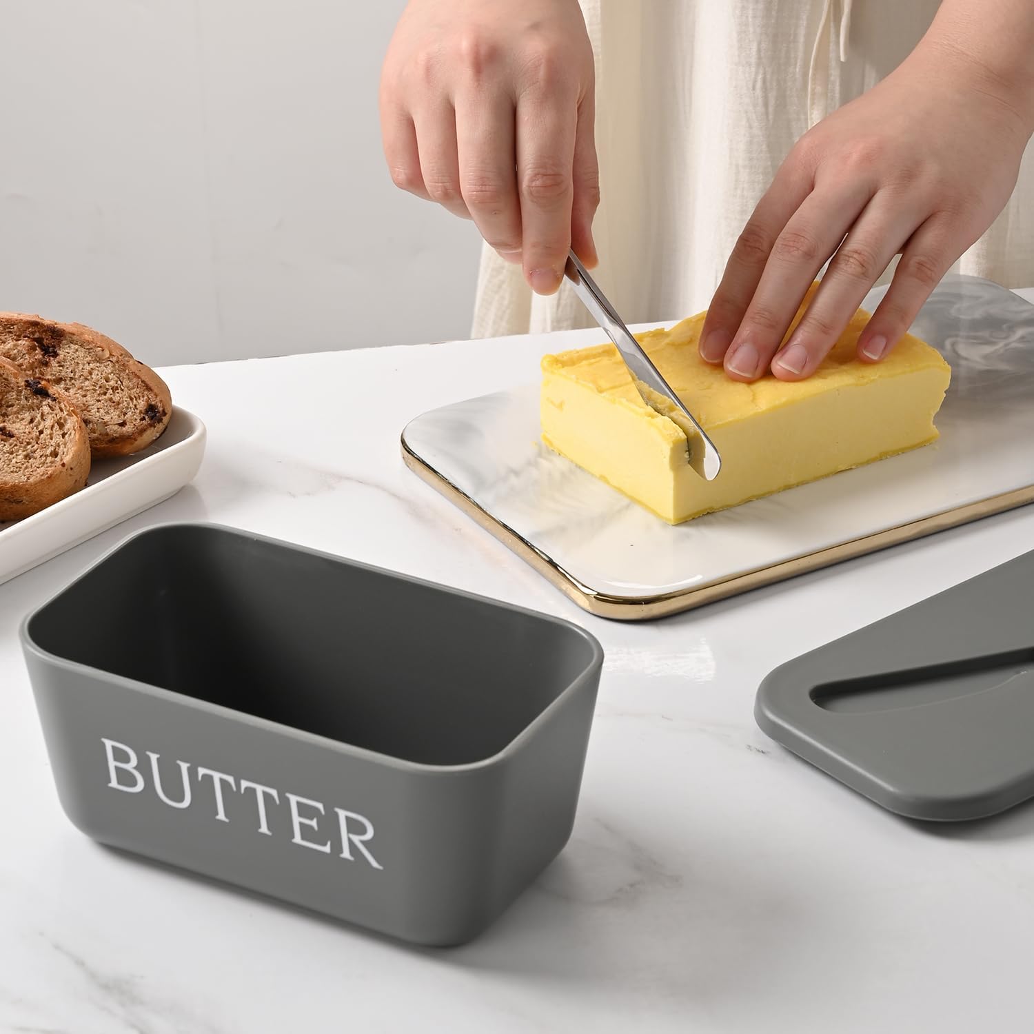 Plastic Large Butter Dish With Lid,Food Grade PP Butter Keeper With Cover,Grey Butter Container For Kitchen Refrigerator Countertop