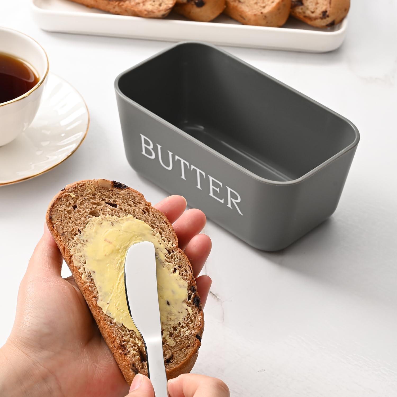 - ๐ช Includes Stainless Steel Butter Knife โ Comes with a durable, rust-resistant butter knife that fits neatly on or inside the lid for easy access.