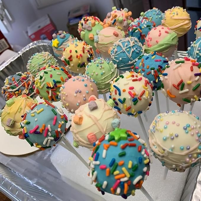 - [ WIDELY USED ] These cake pop sticks, wrappers with ties, and roller are ideal as gifts for families and friends. They serve as excellent cake pop making supplies for various occasions such as Christmas, weddings, birthday parties, graduations, and more