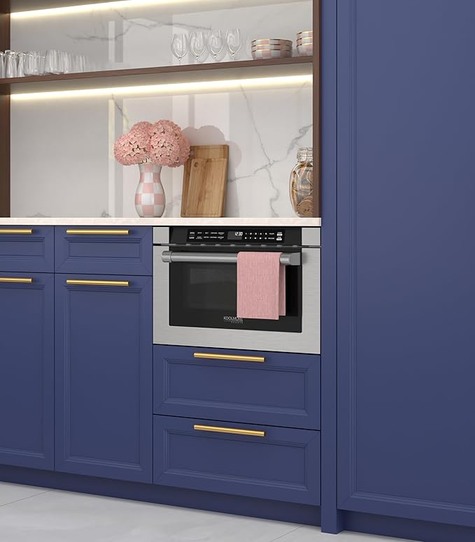 - Modern Black Stainless-Steel Finish: This sleek microwave drawer features a black stainless-steel exterior with tempered glass and galvanized steel sides, offering a stylish and durable addition to any modern kitchen.