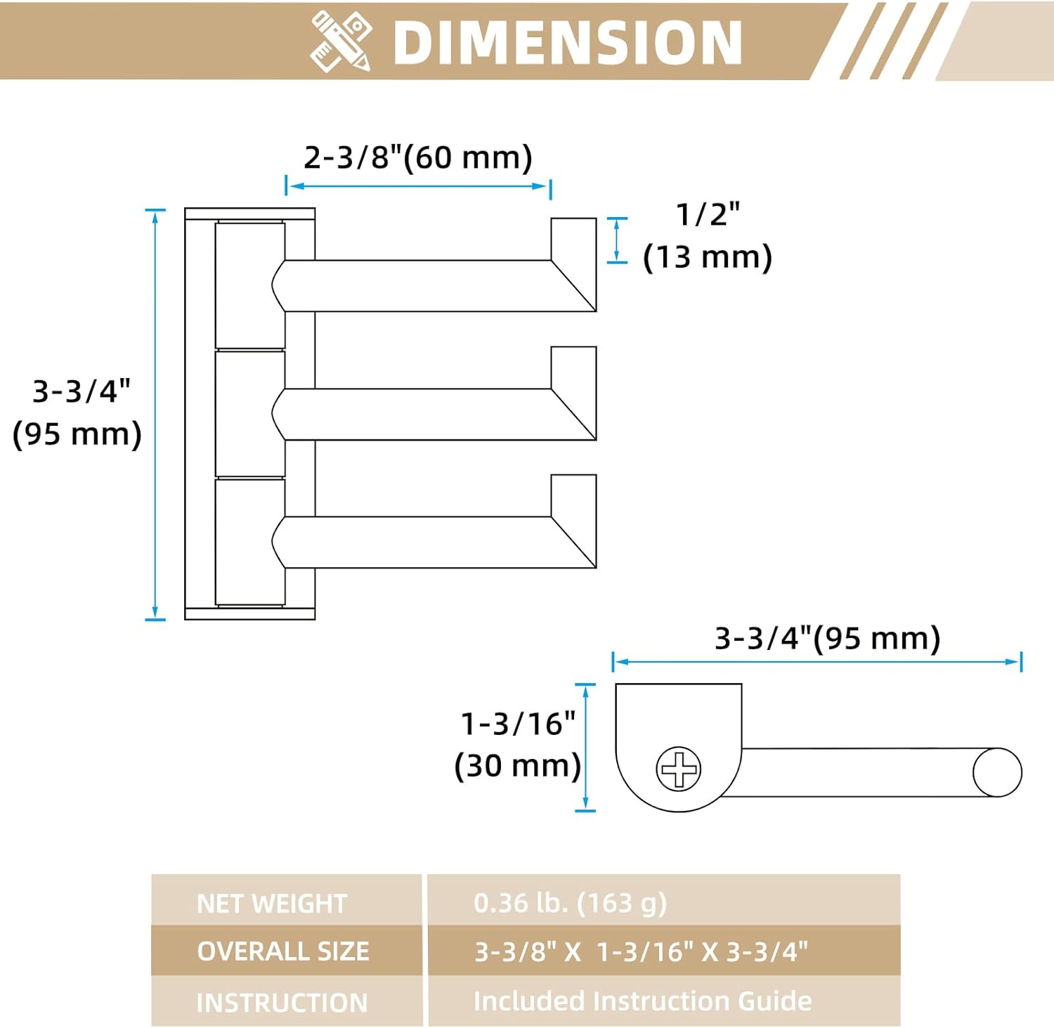 Suyar Bathroom Towel Hook Polished Chrome, SUS 304 Stainless Steel Swivel Robe Hook with 3 Arms, Towel Hanger Wall Mounted
