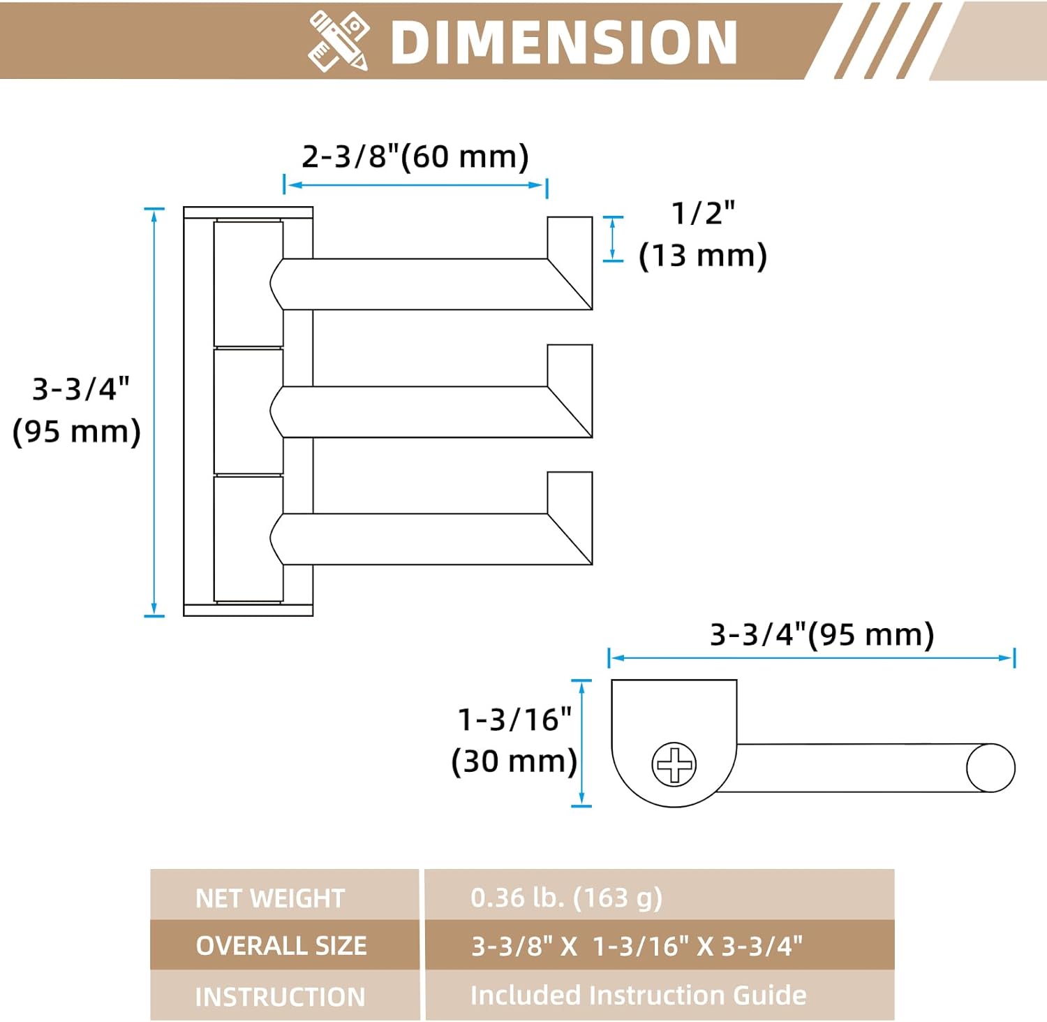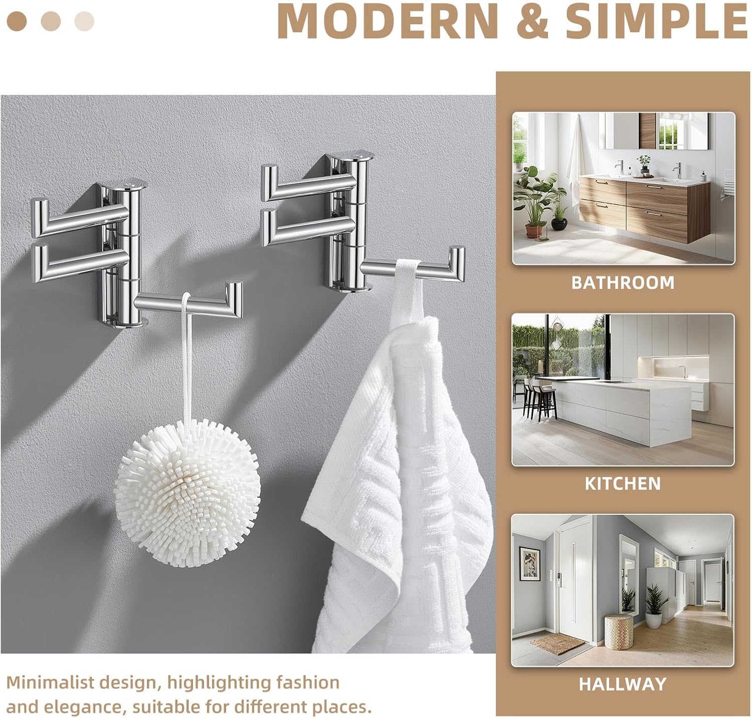 - QUIET ROTATING HOOK: triple swivel arms with built-in rubber gaskets for silent and smooth rotation, effectively eliminating metal-on-metal contact to prevent long-term wear