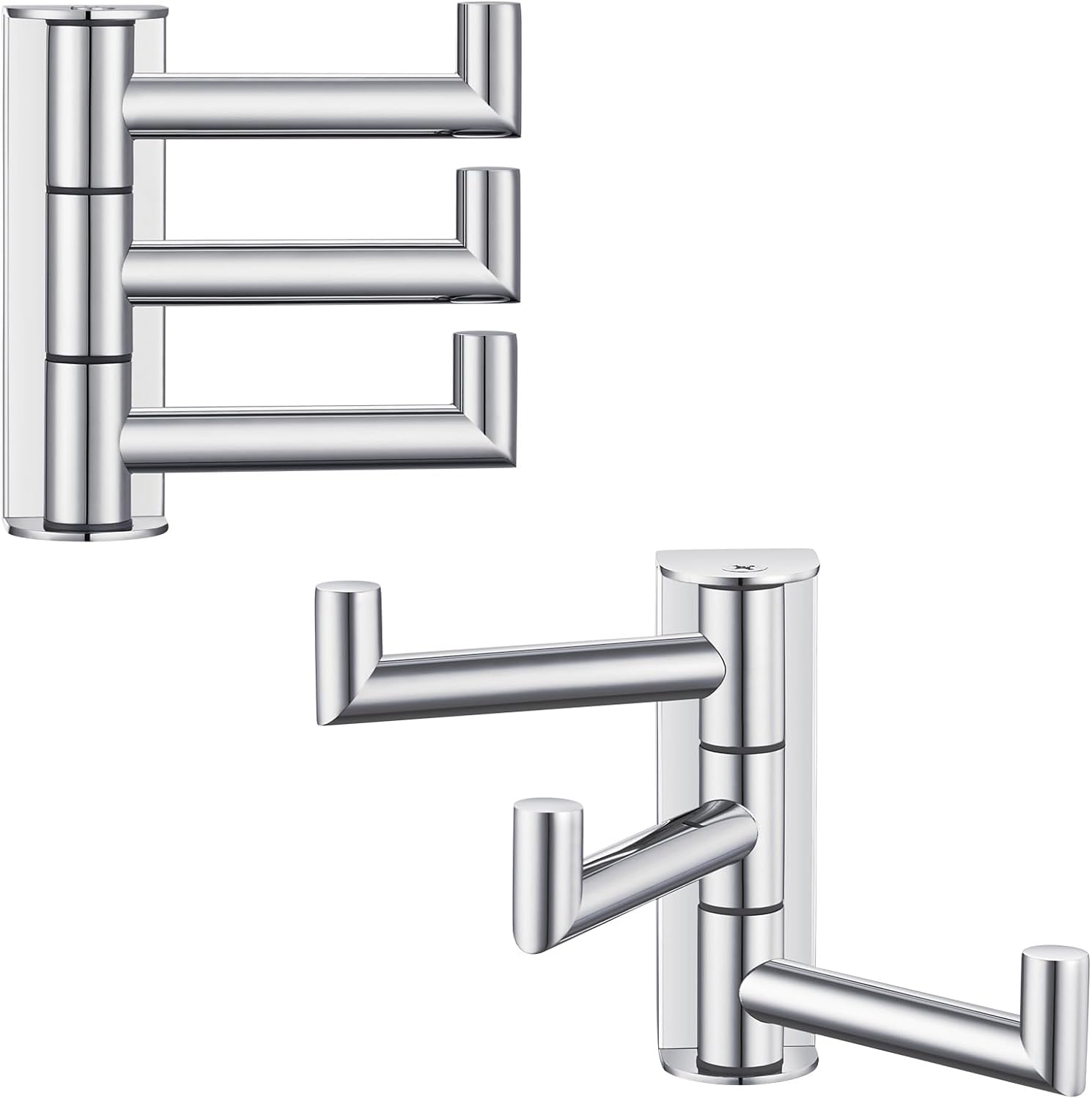 Suyar Swivel Towel Hook Polished Chrome, SUS 304 Stainless Steel Robe Holder for Bathroom with 3 Arms, 2 Pack
