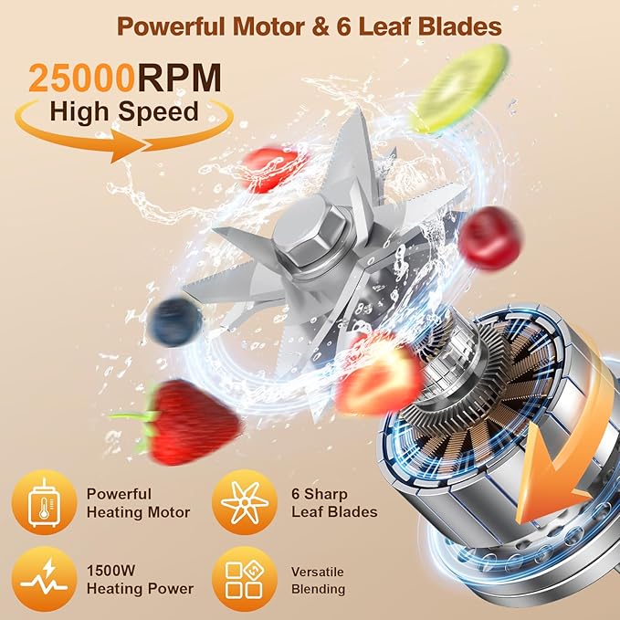 - [Professional-Grade Blending Power + Quiet Operation]This high-performance blender and soy milk maker combo delivers 25,000 RPM speeds to crush ice, frozen fruit, and nuts effortlessly—yet operates with reduced noise for peaceful mornings. Achieve smooth, lump-free protein shakes, soups, and sauces (pro tip: chop ingredients for optimal texture).