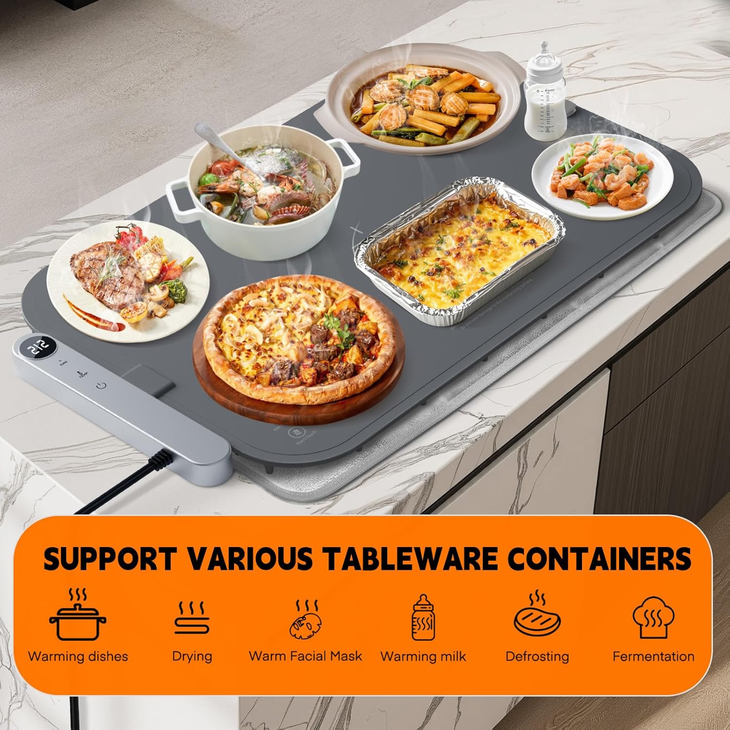 - Compatible with Various Occasions: This warming tray is suitable for different materials of kitchenware, such as glass, stainless steel and ceramics, good ideal for large family gatherings, holiday parties. Also can be used as a versatile home assistant to heat dishes and mask, dough fermentation.