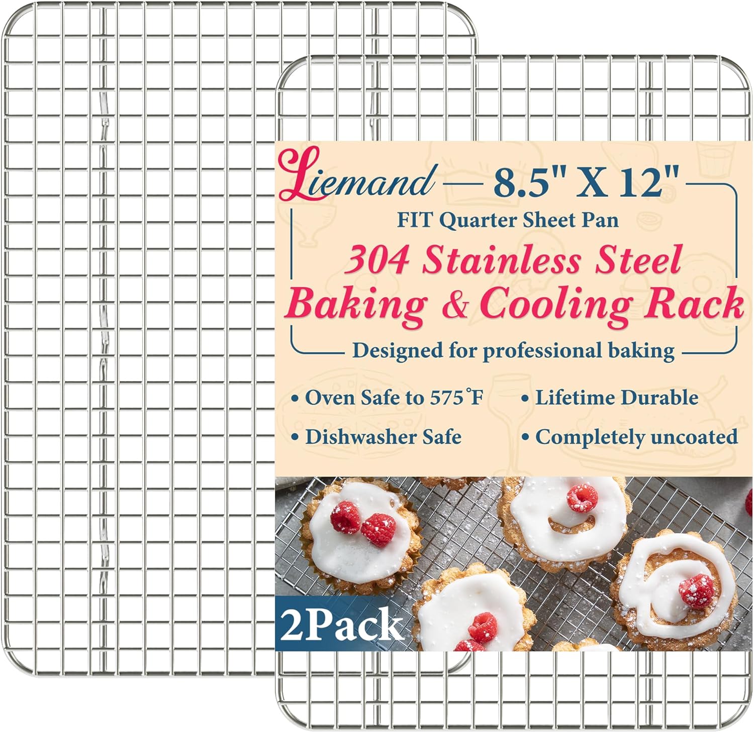 Cooling Racks for Cooking and Baking-8.5"x12" Oven Safe Premium Stainless Steel Heavy Duty Baking Rack Tight-Wire, Fits Quarter Sheet Pan for Roasting & Grilling & Cooking-Set of 2