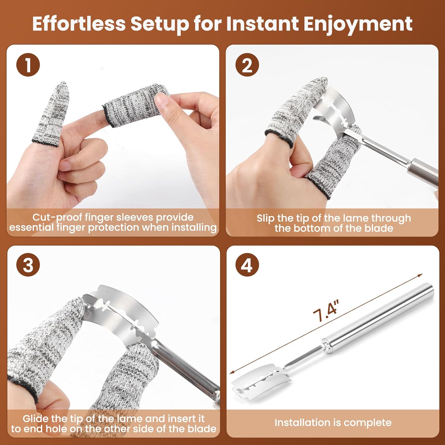 - Safety in Use & Storage: Our bread scorer tool comes with two anti-cutting finger covers that allow you to safely and quickly install and remove blades, and a thoughtful leather protective cover provides safety protection when stored