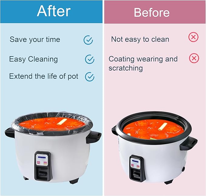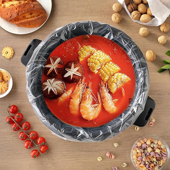 - 1. Effortless Cleanup & Time Saver: Say goodbye to scrubbing stuck-on food and grease! Our disposable slow cooker liners make cleanup a breeze—just cook your favorite meals, remove the liner for crock pot, and toss it away. Perfect for busy households and those who want to spend more time enjoying meals and less time washing dishes.