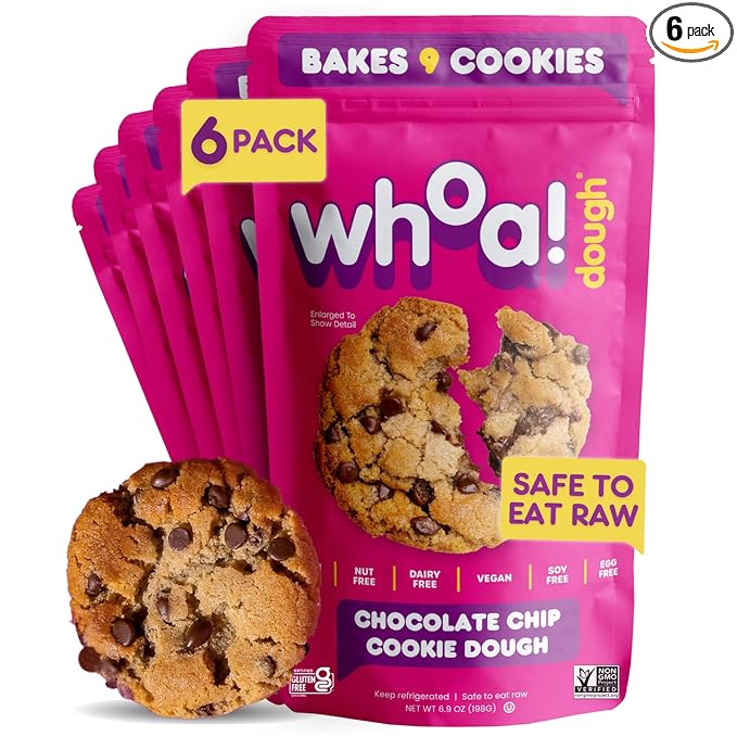 Whoa Dough Ready to Bake Cookie Dough Chocolate Chip – Certified Non-GMO, Kosher, Gluten Free – Plant-Based Snack Dough Made with Real Ingredients – 6 Pack
