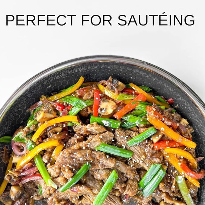 Cooksy 12 Inch Honeycomb Surface Hybrid Stainless Steel Frying Pan with Lid New Version