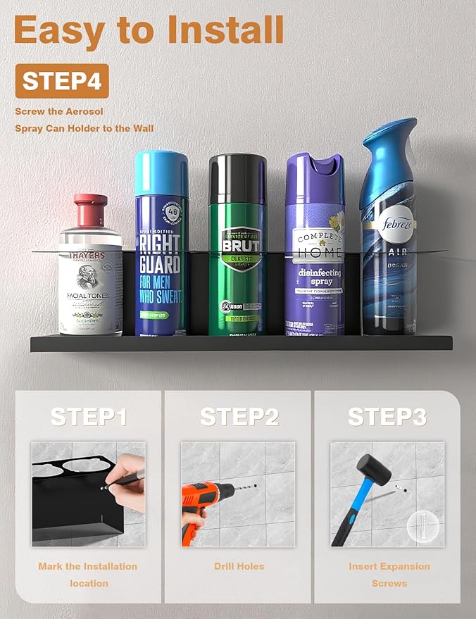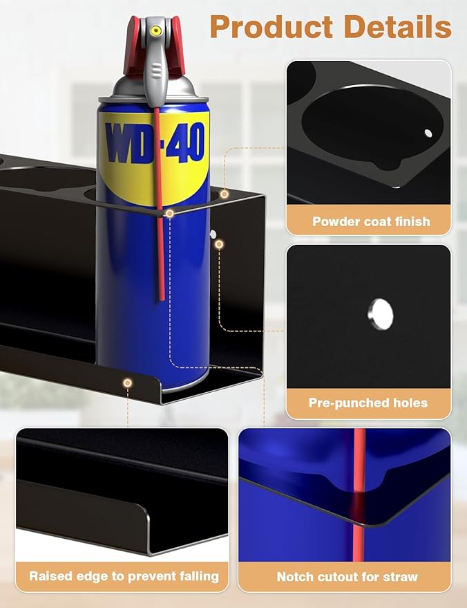 - Durable and Rust-proof - The spray can holder is made of heavy-duty material with anti-rust treatment on the surface, which has a stable structure, strong and durable