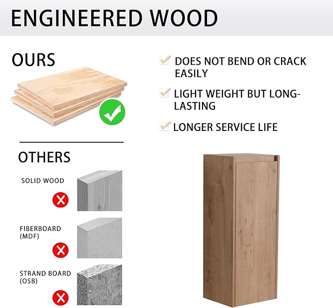 - 【STRONG AND ENVIRONMENTALLY FRIENDLY】Crafted from superior eco-conscious PLYWOOD, the 12 Inch Bathroom Wall Mounted Cabinet is coated with scratch and water-resistant melamine. It's engineered to withstand moisture and humidity, while being simple to clean and preserve.