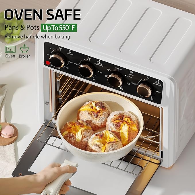 - Compatible with All Stovetops: OzawaBear cookware set works on induction, gas, electric, glass-top stoves, and ceramic stoves—plus oven-safe up to 550°F. Includes silicone lids (oven safe to 350°F) and freezer-friendly sealing lids that handle -100°F to 170°F.