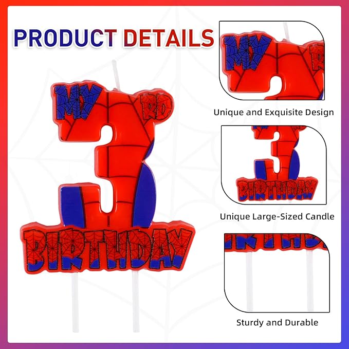 - Package Include: You will receive 1pc of Spider themed Happy Birthday number cake candle birthday party decoration.