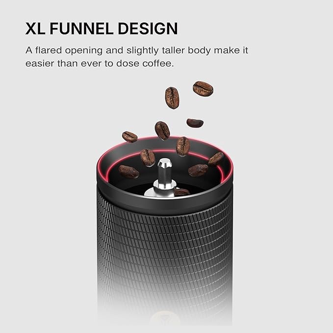 - [ Easy Clean & Carry ] Coffee grinder upgraded folding handle is perfect for on-the-go carrying, while maintaining a lightweight and a moderate sense of weight and luxury. It is ideal not only for home use but also for carrying outdoors or traveling. Easy to disassemble for cleaning - just be cleaned by brush.