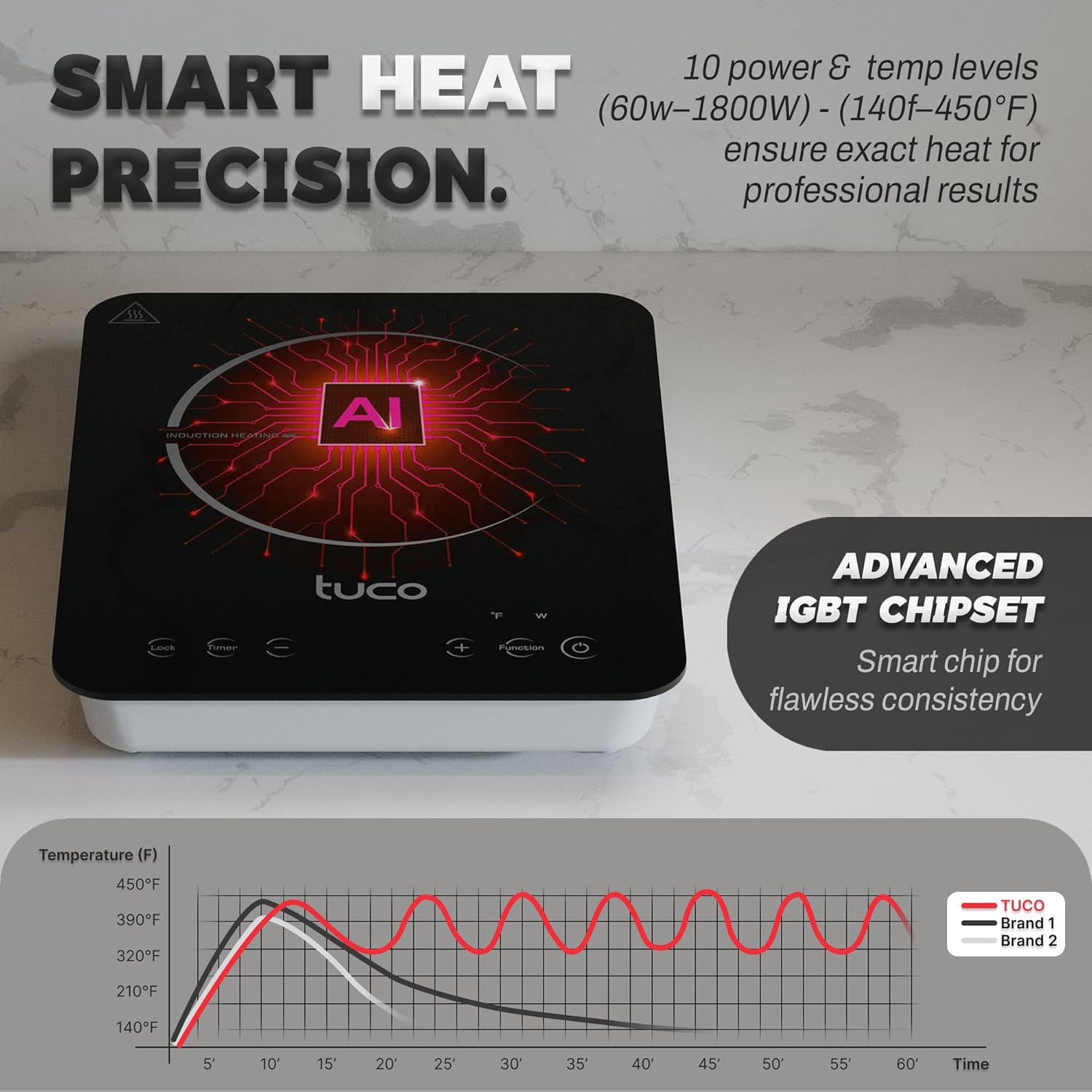 - 💎 STABLE & RELIABLE PERFORMANCE: The TUCO Induction Cooktop’s advanced chip control system ensures precise power delivery and stable high-power output, even during extended use. Experience consistent results with every meal.