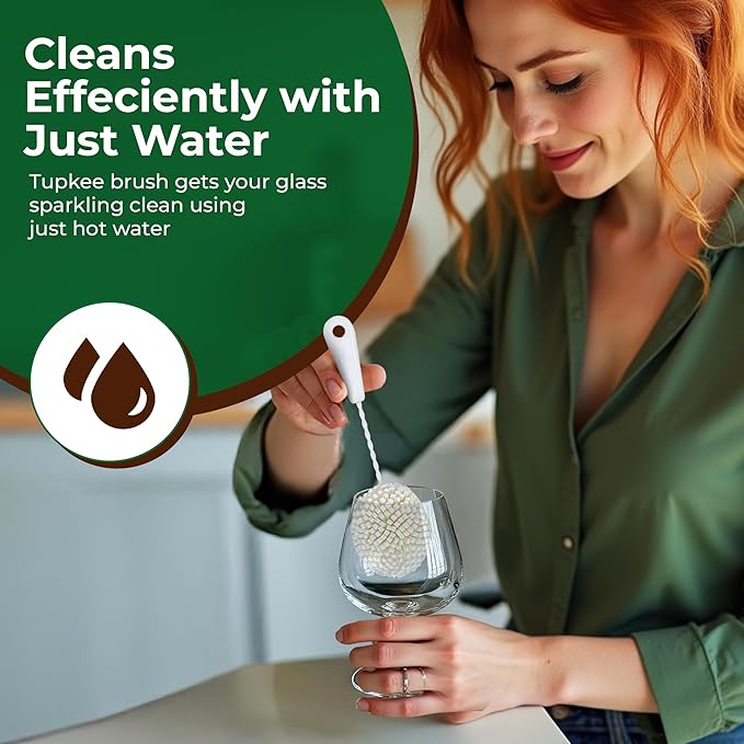 - CLEANS EFFICIENTLY WITH JUST WATER - Tupkee carafe scrub brush gets your decanter sparkling clean using just hot water. No need for detergents or soaps that could linger and leave an unpleasant aftertaste in your glass.