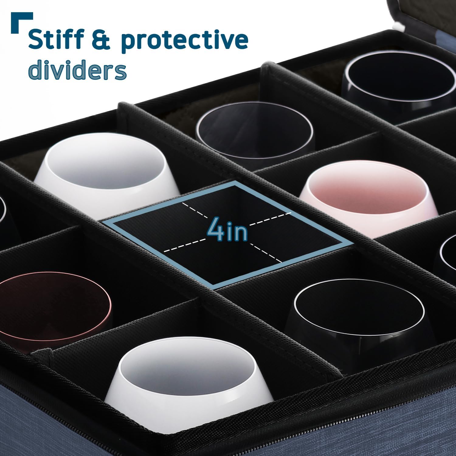 - Fits Up To 12 Cups: Each wine glass storage box with dividers fits up to 12 cups in the 4-inch inner slots. Dimensions: 12.5โ x 16โ x 10โ.