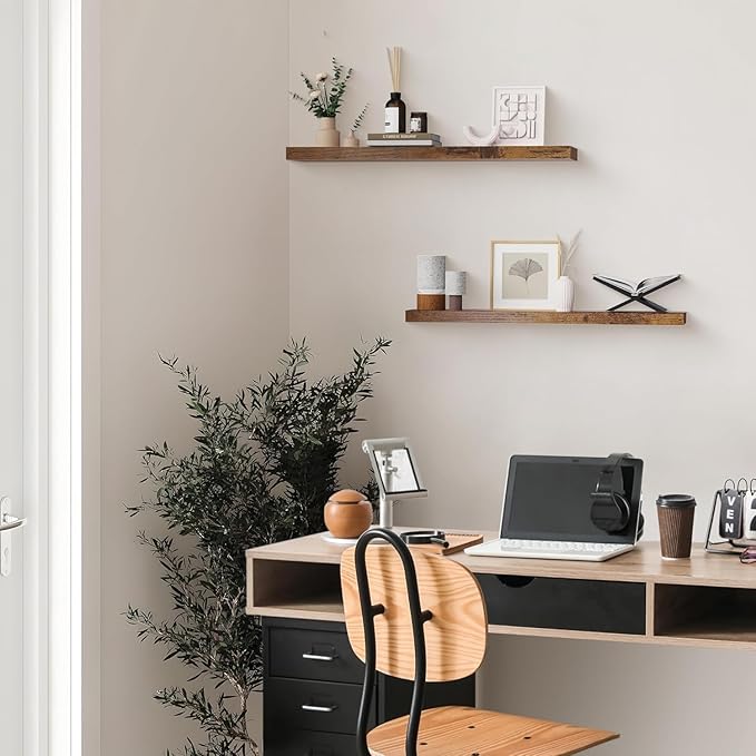 - VERSATILE AND STYLISH DESIGN: Elevate your space with our wall shelves available in wood, black, and white. These floating shelves come in three sizes (15 inches, 24 inches, and 36 inches) and feature a natural wood texture that blends seamlessly with any decor style.