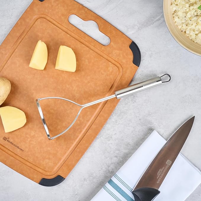 - ERGONOMICALLY DESIGNED HANDLE: Say goodbye to hand fatigue! Each stainless steel potato masher's handle is designed to provide a comfortable grip and enhanced control during use.