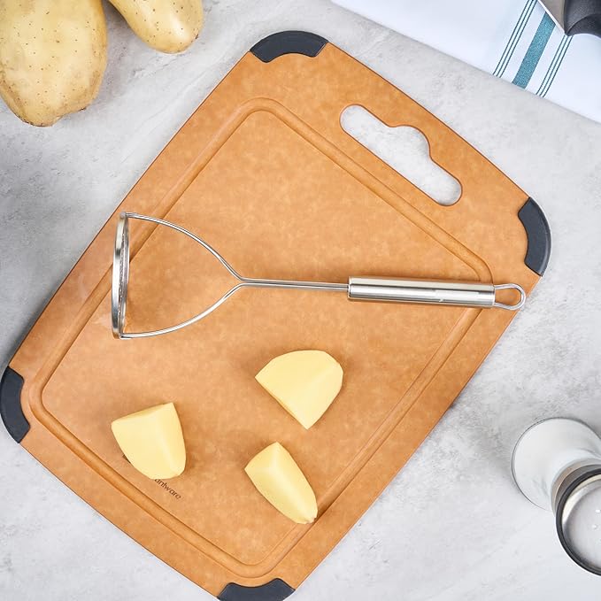 - ERGONOMICALLY DESIGNED HANDLE: Say goodbye to hand fatigue! Each stainless steel potato masher's handle is designed to provide a comfortable grip and enhanced control during use.