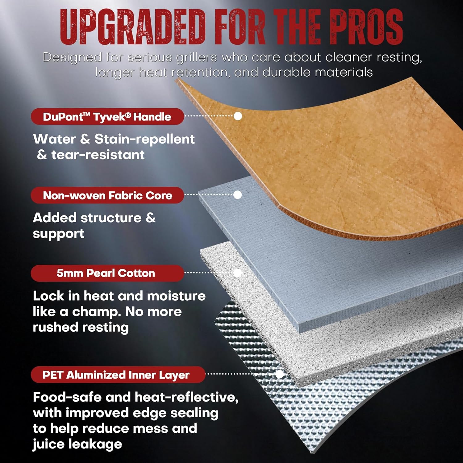 - 【Juicy Meat Starts with Better Resting】- Both versions use layered insulation and a food-grade PET aluminum lining to retain heat and moisture. The PRO version upgrades to 5mm pearl cotton for superior heat retention—keeping your brisket, ribs, or pork shoulder warm and tender every time.