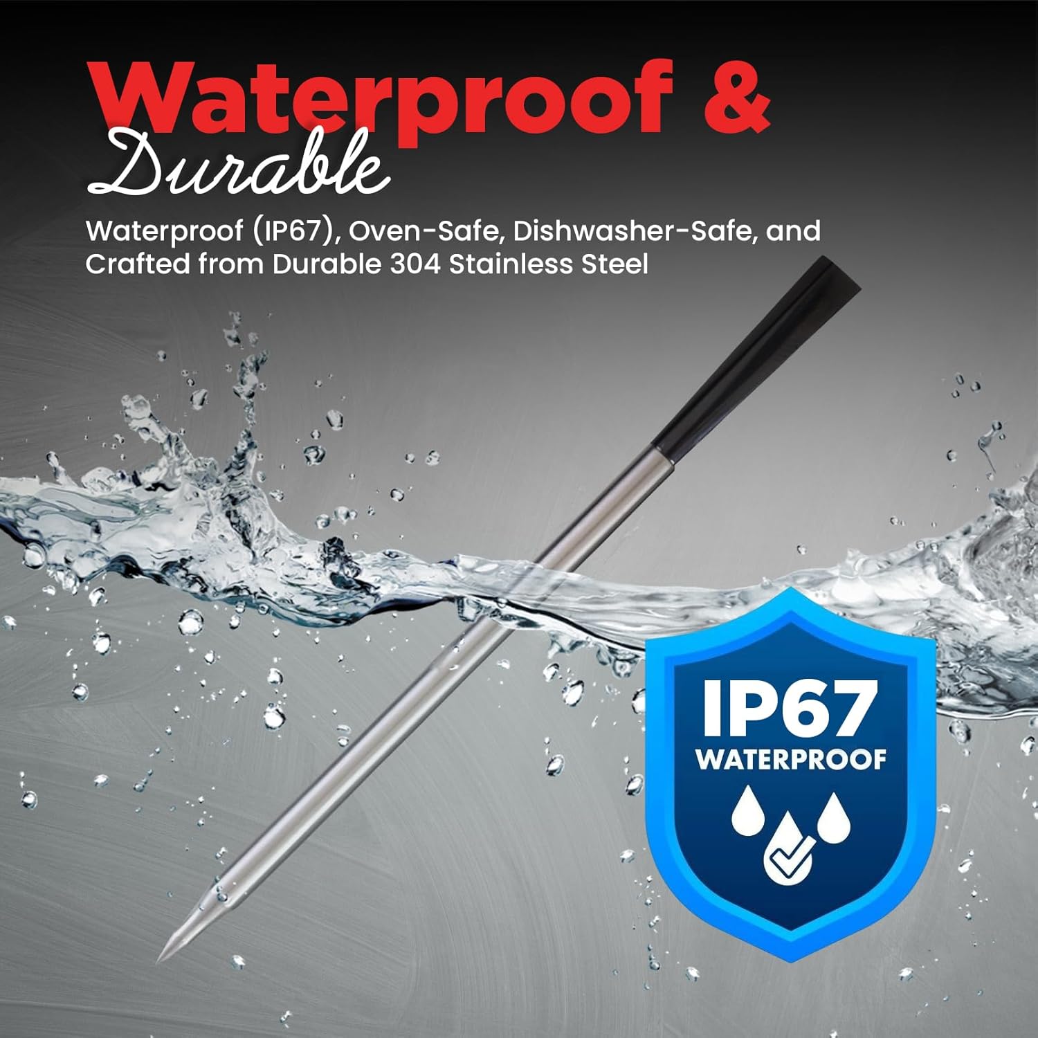 - IP67 Waterproof & Dishwasher Safe: Our oven safe meat thermometer wireless is designed with a durable, waterproof exterior. The wireless meat probe thermometer for cooking withstands rigorous cooking environments, offering effortless cleaning and maintenance for the cooking thermometer for meat.