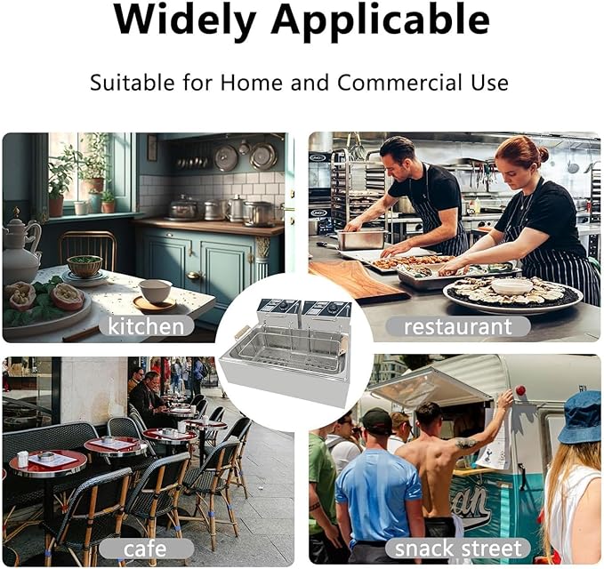 - Robust and Easy To Clean - This commercial deep fryer is made from heavy duty thickened 0.6mm stainless steel for a robust construction. The thickened tank is durable and the deep fryer has removable inserts for quick cleaning. Everything is dishwasher safe except for the heating element