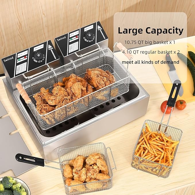 Commercial Deep Fryer with Basket for Restaurant or Home Use, 3400W 12.7QT Detachable Large Capacity Stainless Steel Countertop Electric Oil Fryer with Temperature Control