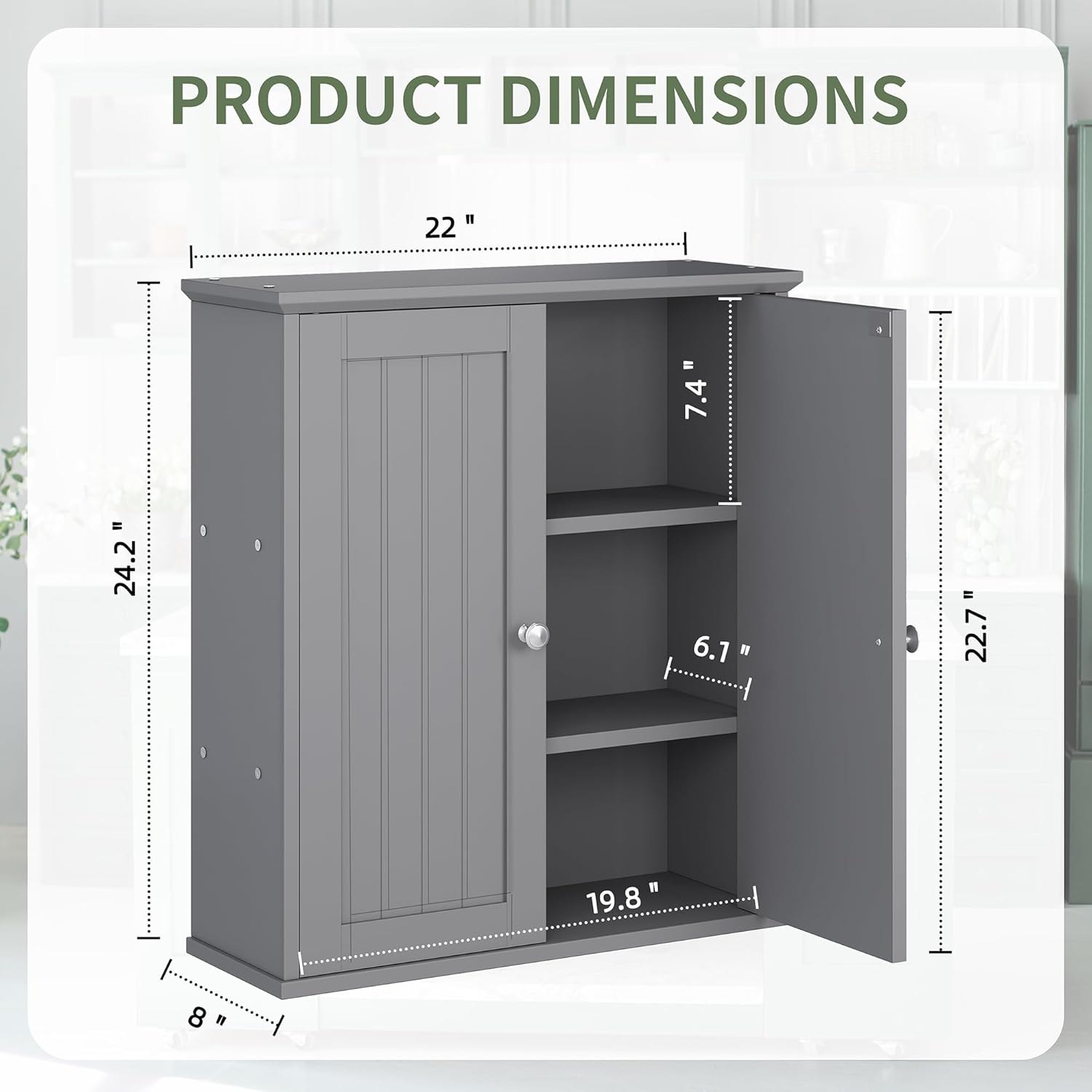 Meilocar Bathroom Wall Cabinet, Bathroom Cabinet Wall Mount, Over Toilet Space Saver Storage Cabinets Wall Mounted, Wood Medicine Cabinets with Doors, Grey