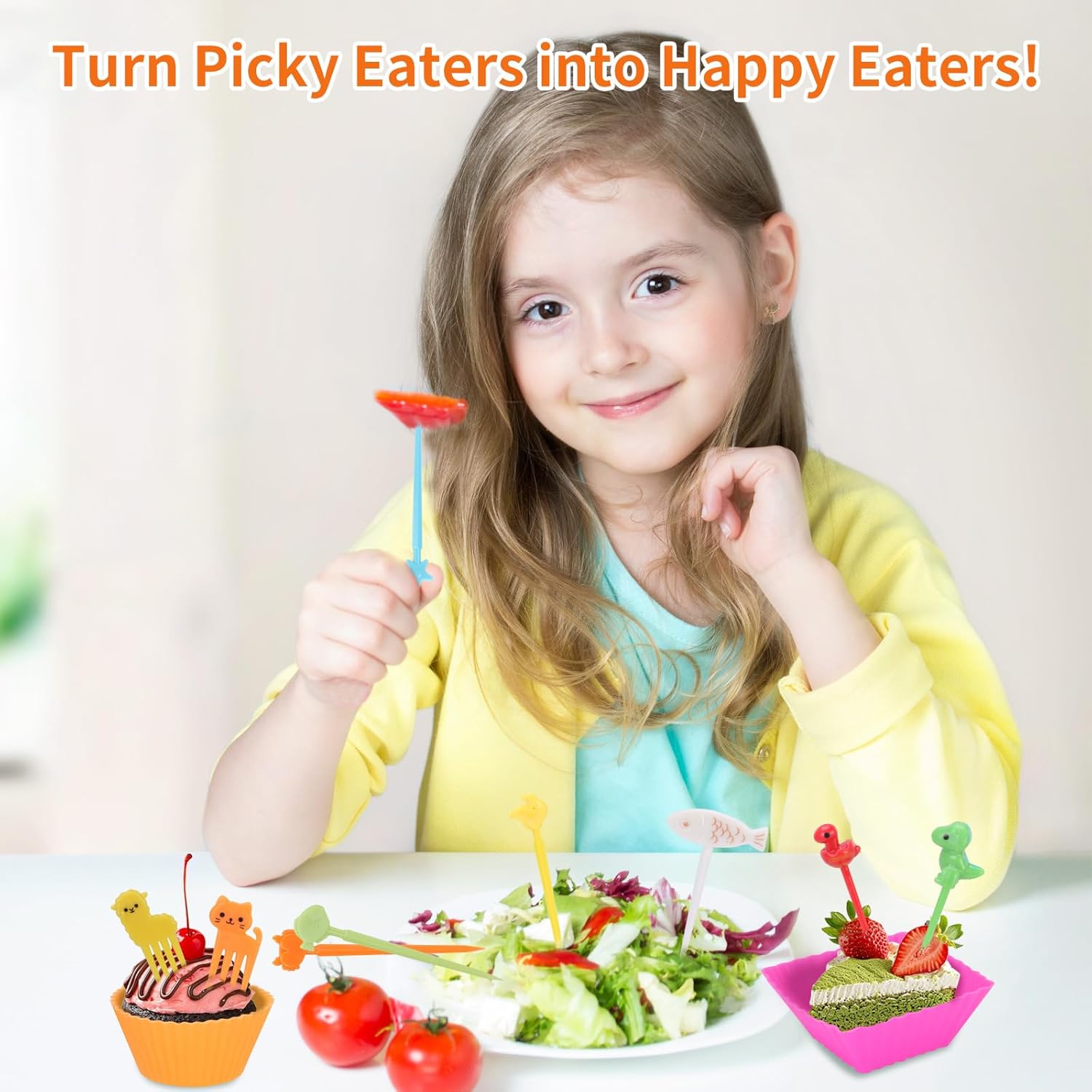 - 【ENCOURAGE HEALTHY EATING HABITS】Transform mealtime from a chore into an adventure! The vibrant colors and cute animal picks capture your child's imagination, encouraging them to explore different foods and eat a more balanced, nutritious diet—ideal for picky eaters.