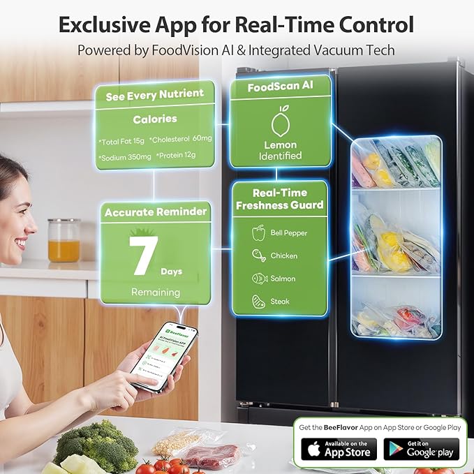 - 【80kPa Powerful Suction & 8X Freshness】Beelicious Pro 80kPa upgraded powerful vacuum pump provides strong suction, along with advanced sealing technology, keeping your food fresh for up to 8X times longer, protecting your food from freezer burn and saving your money & fridge space.