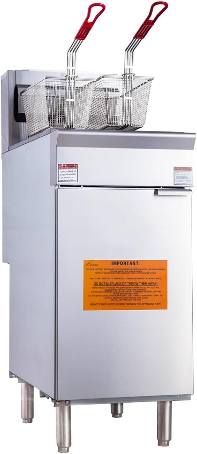 CLIVIA Gas Deep Fryer, Commercial Floor Natural Gas Fryer with 2 Baskets, 40 lb. Capacity with 3 Burners, Total 90,000 BTU Gas Powered Fryer for Restaurants