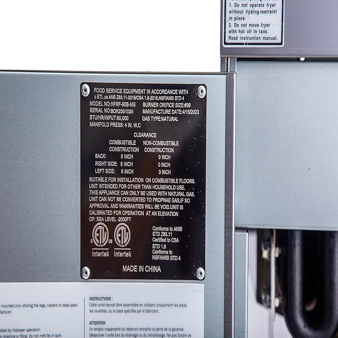 - Natural Gas Operation - This industrial - grade deep fryer requires a natural gas connection for operation. It is equipped with adjustable 6 - inch stainless - steel heavy - duty legs, enabling you to set the ideal working height. Comes with two nickel - plated fryer baskets and a handy fry basket hanger, which allows for easy drainage of excess oil and the ability to cook multiple foods simultaneously.