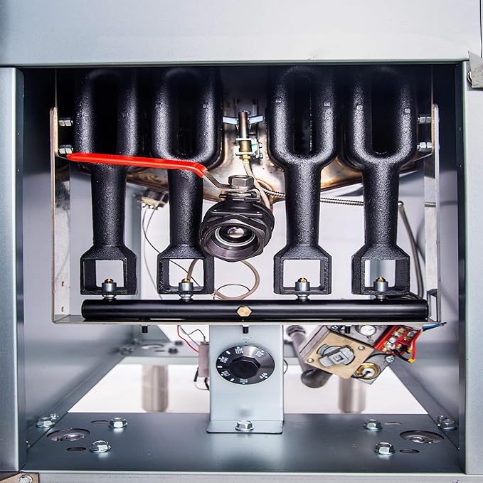 - Adjustable Temperature Control - The temperature of this fryer can be adjusted within the range of 200°F to 400°F (93°C to 205°C). Once the set temperature is reached, the thermostat automatically shuts off the gas to the burner. This feature allows you to set the optimal frying temperature for different types of food. The thermostat control system ensures excellent performance and quick temperature recovery, guaranteeing that your food is cooked to a perfect, crispy finish.