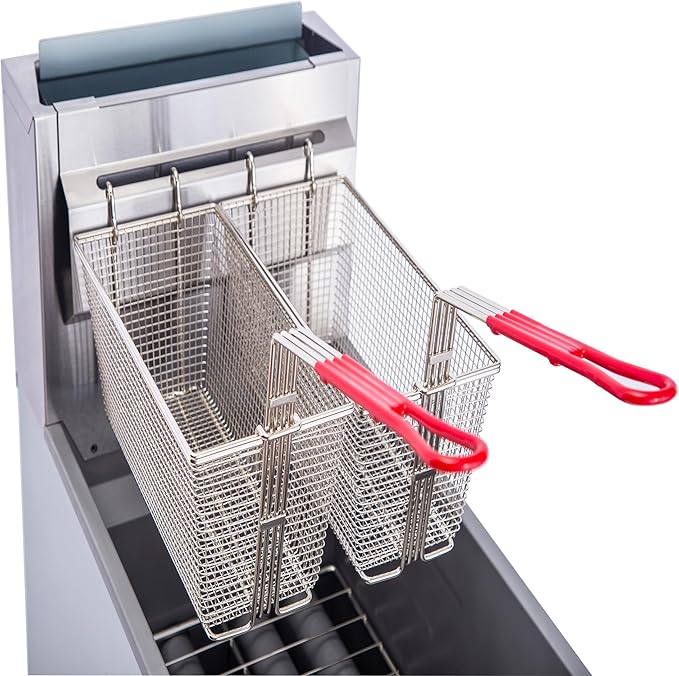 - Natural Gas Operation - This industrial - grade deep fryer requires a natural gas connection for operation. It is equipped with adjustable 6 - inch stainless - steel heavy - duty legs, enabling you to set the ideal working height. Comes with two nickel - plated fryer baskets and a handy fry basket hanger, which allows for easy drainage of excess oil and the ability to cook multiple foods simultaneously.