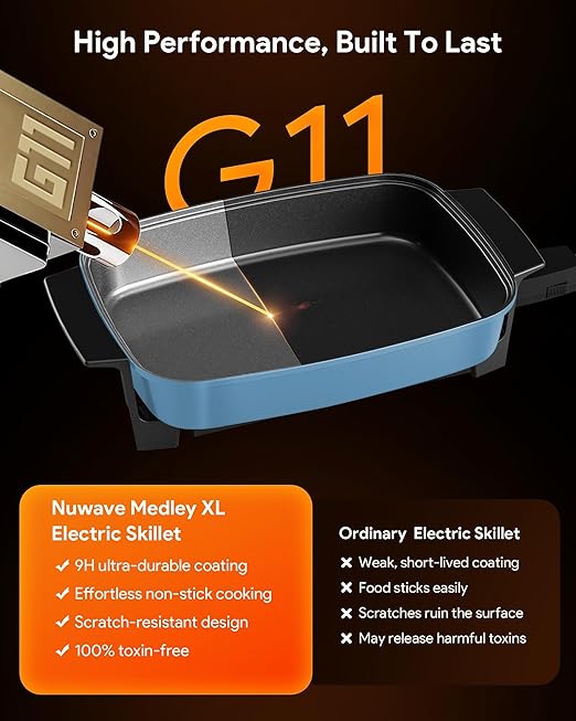 Nuwave Medley XL Digital Electric Skillet, Family Size Griddle w/Glass Lid, 2025 New & Improved Precision Heating, 100°-425°F, PFAS Free G11 Nonstick Ceramic Coating, Portable Hot Plate, 7qt Capacity