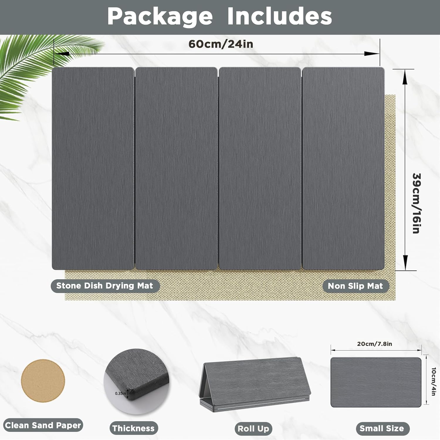 - 【Foldable & Space-Saving Design】Engineered for modern living, this large stone dish drying mat folds compactly, saving up to 60% storage space. Perfect for cozy kitchens or minimalist setups! Customize it effortlessly—trim to any size to fit your sink, countertop, or drying rack precisely.