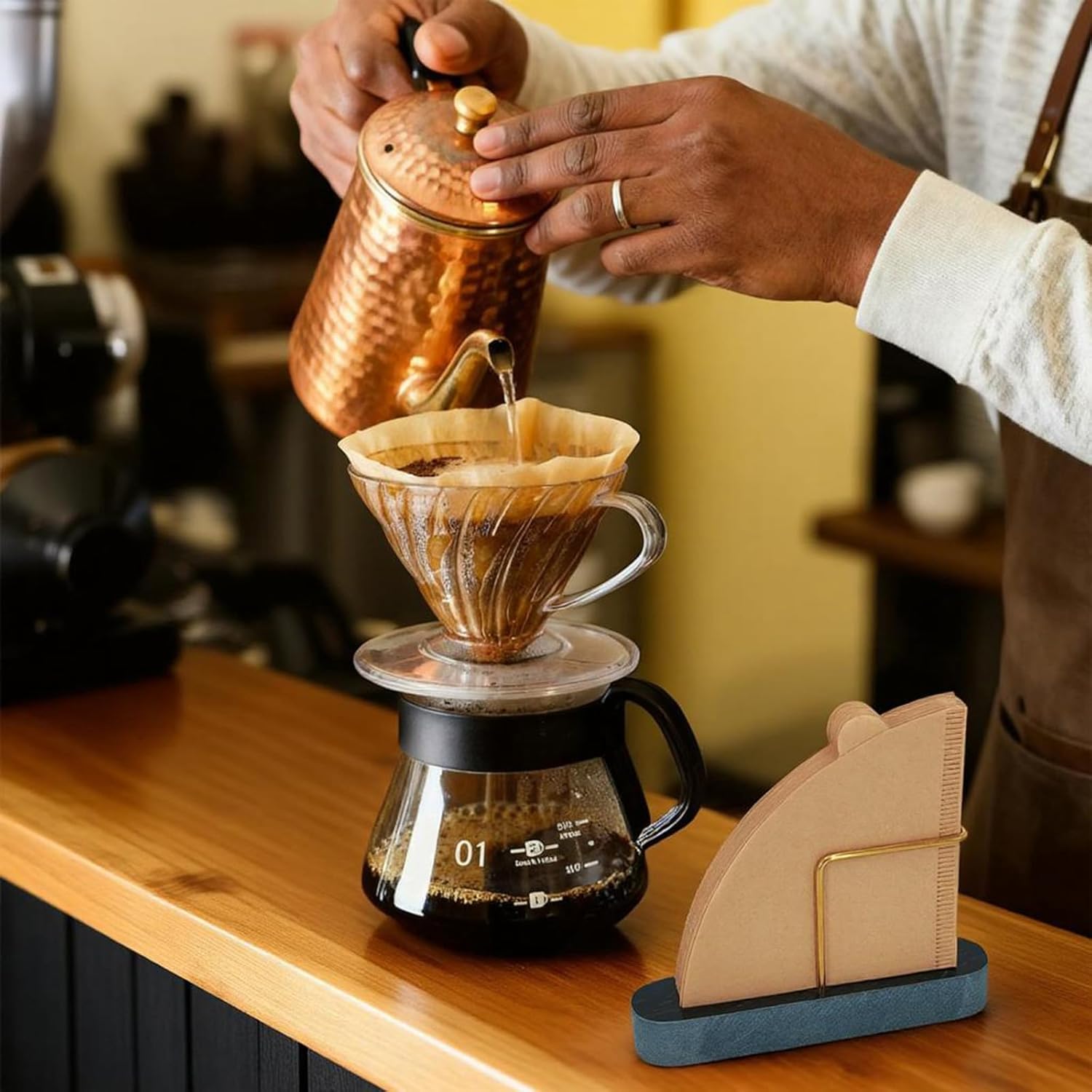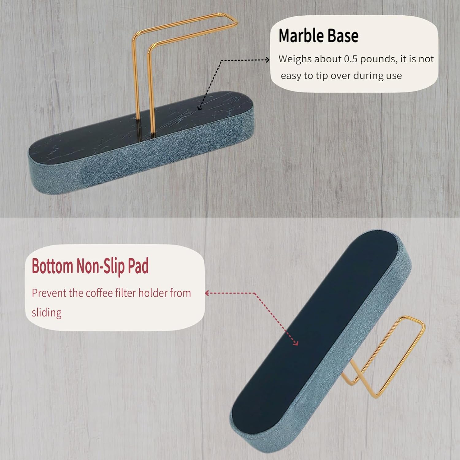 - Material: Marble base and weighs about 0.5 pounds, making the coffee filter holders for counter less likely to tip over