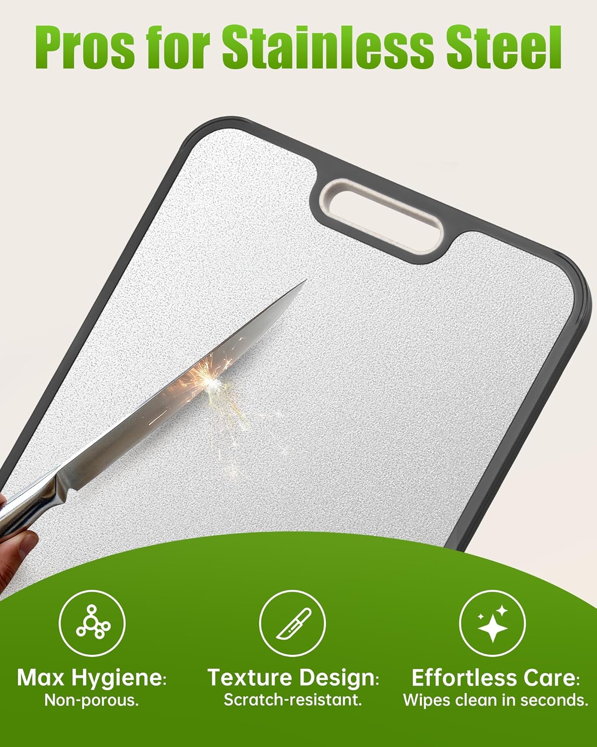 Stainless Steel Cutting Board, Double Sided 304 Steel & Food-Grade PP, Large Chopping Board Food Grade for Meat and Fruit, Non-Slip, Gifts for Housewarming 16”×11”