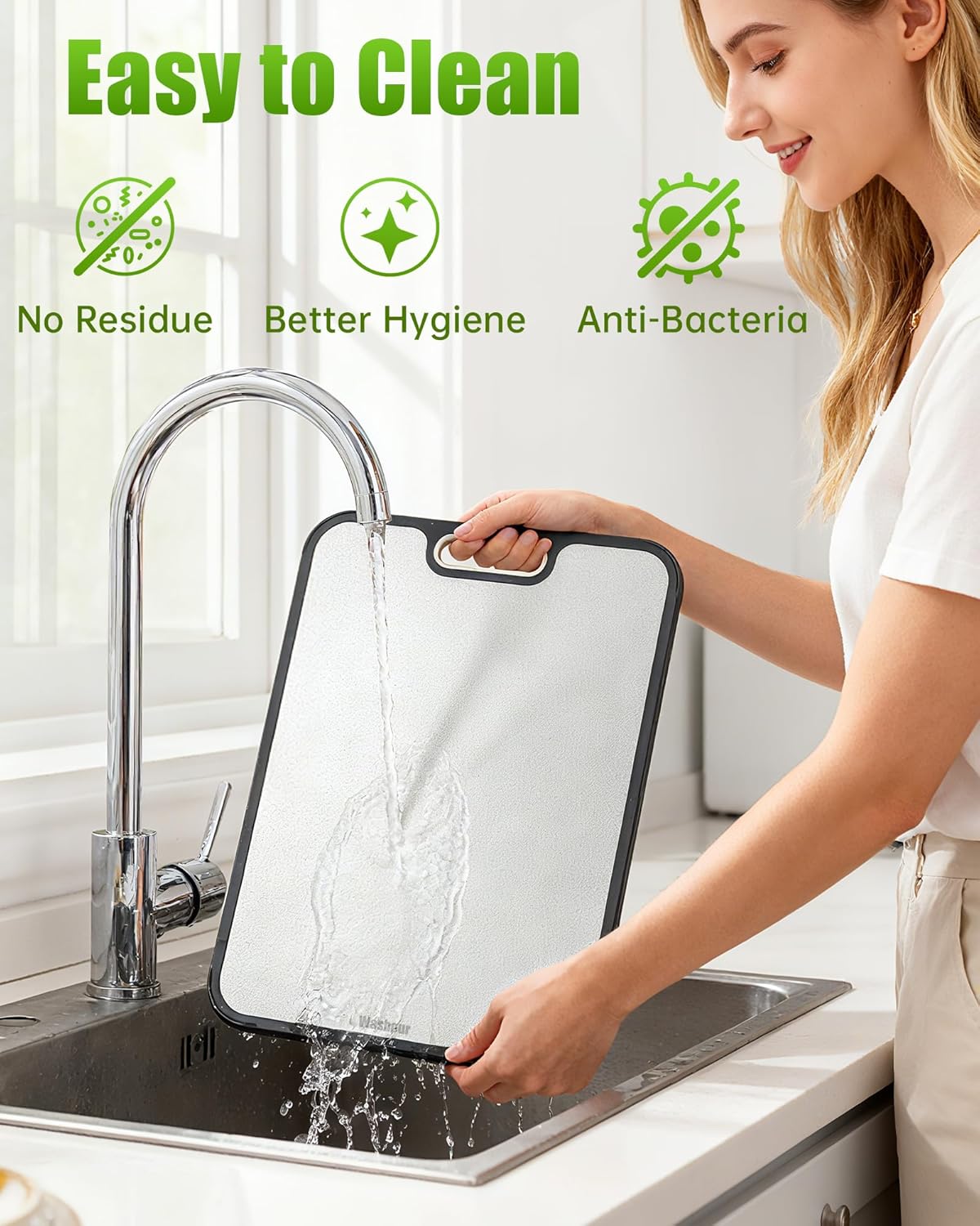 - 2-in-1 Cutting Board: Features food grade 304 stainless steel and wheat straw PP, perfect for separating meat and vegetable prep