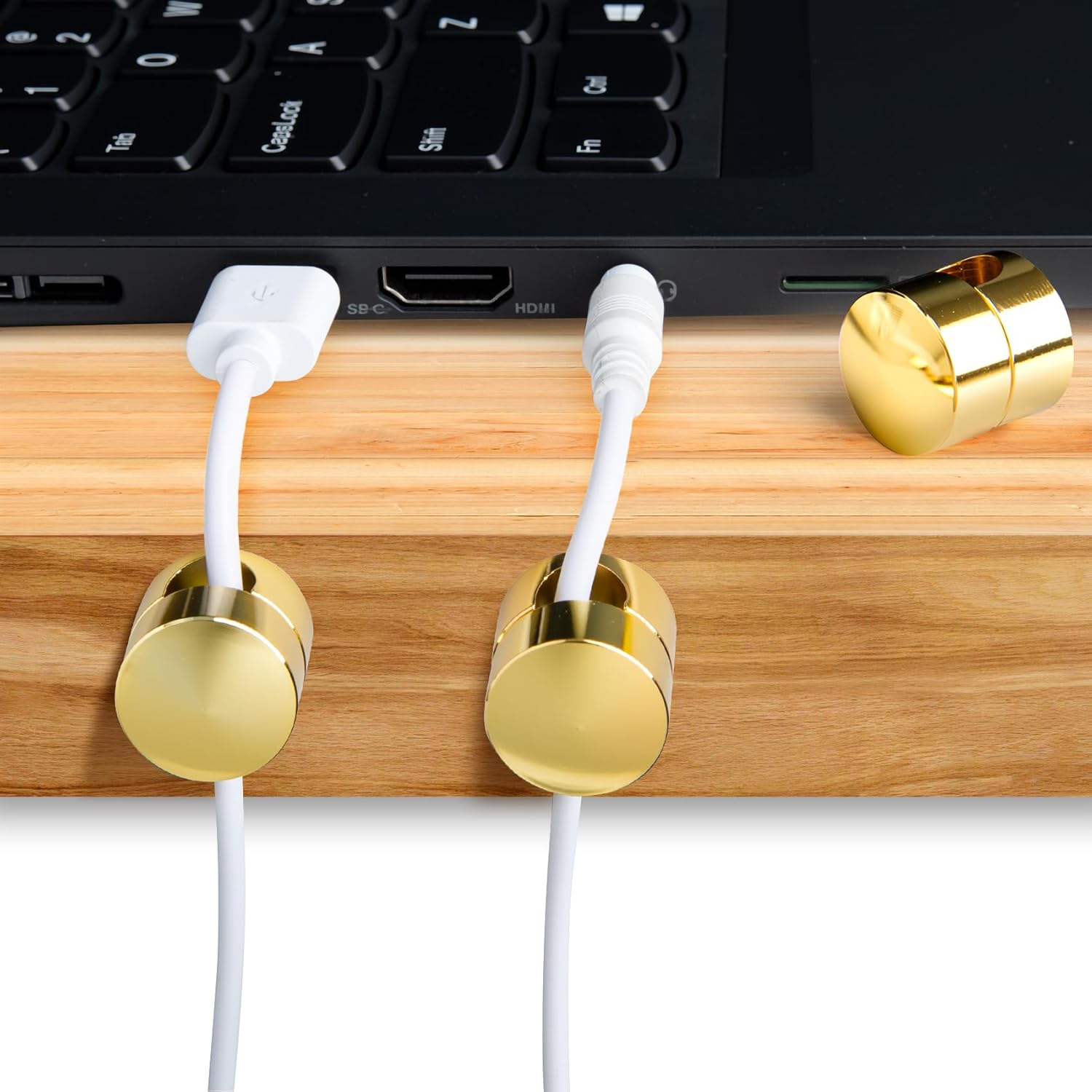 - Easy to Use: The package includes 5 stickers for using. You just need to clean the surface that you are going to attach the cord anchor to, then stick the gold cord holder on the surface with glue stickers, and thread the cable from the hole to keep it organized